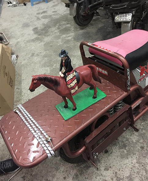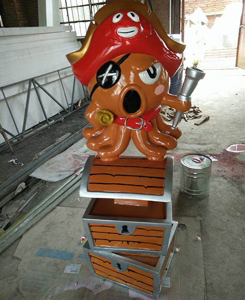 玻璃鋼制作工藝:成品制作前,先將所要制作的產(chǎn)品用特定泥塑材料造出相應要制作的產(chǎn)品,在泥塑稿制作完成后,翻制石膏外模,然后將玻璃鋼(即樹(shù)脂和玻璃絲布的結合物)涂刷在外模內部。等其干透后打開(kāi)外模,經(jīng)過(guò)合模的程序,獲得玻璃鋼雕塑成品。